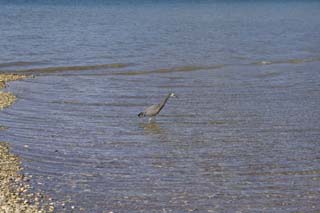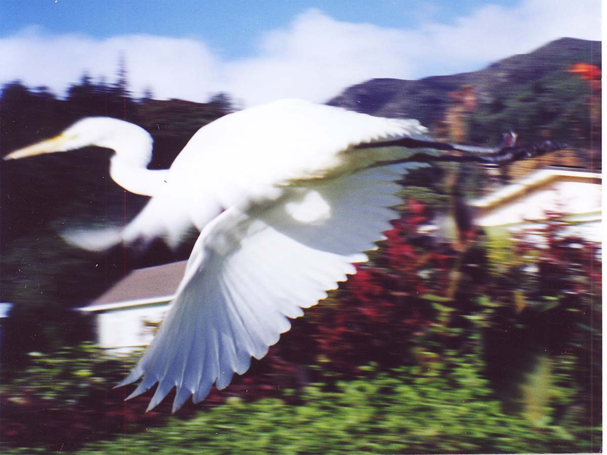 White heron or kotuku. Egretta alba modesta. New Zealand is near the extreme limits of its distribution and is very rare here now (total population perhaps 100-120). Numbers were greatly reduced when the white feathers were used for women's hats. The kotuku occasionally visits Ngakuta Bay. This one was captured on film just as it flew off to other parts in 2010. Photo Toni Van Der Velden Enlarge |