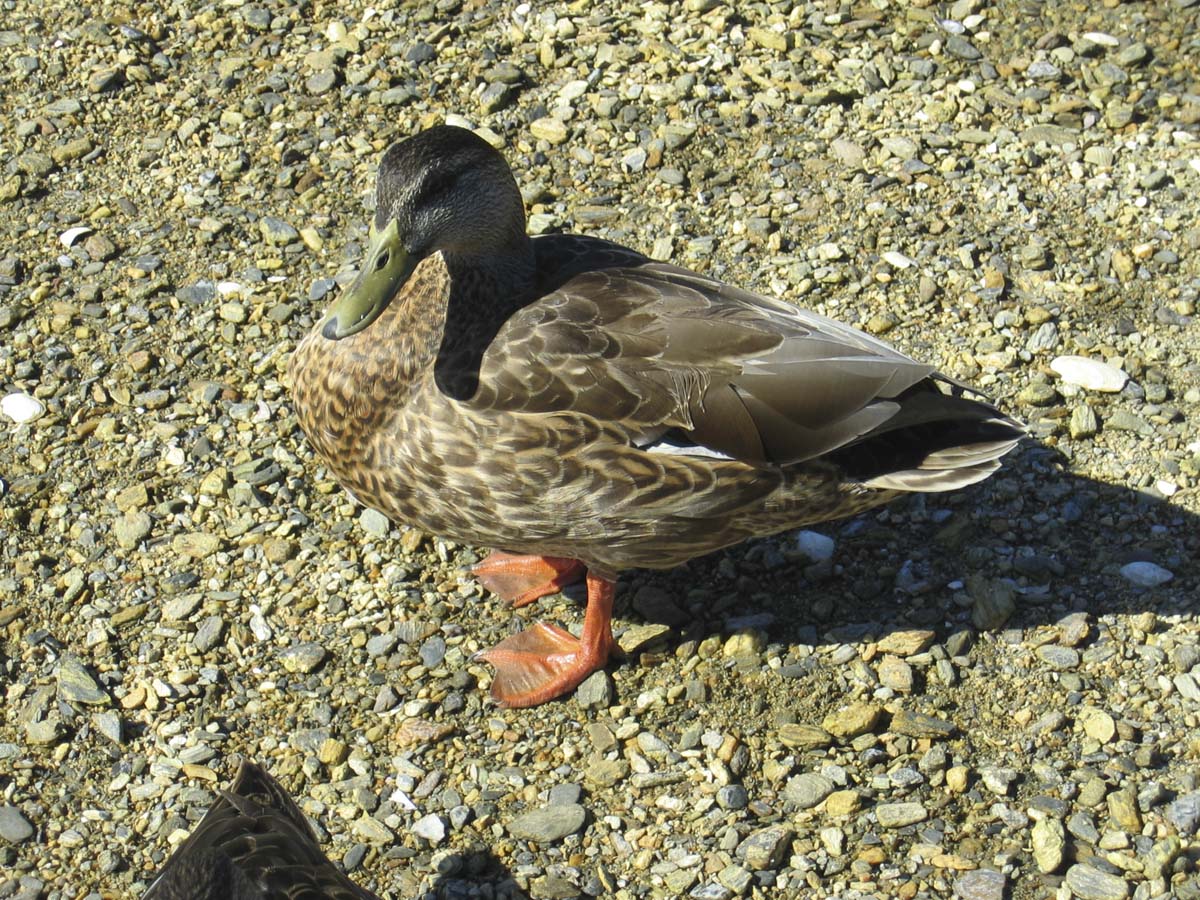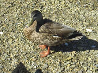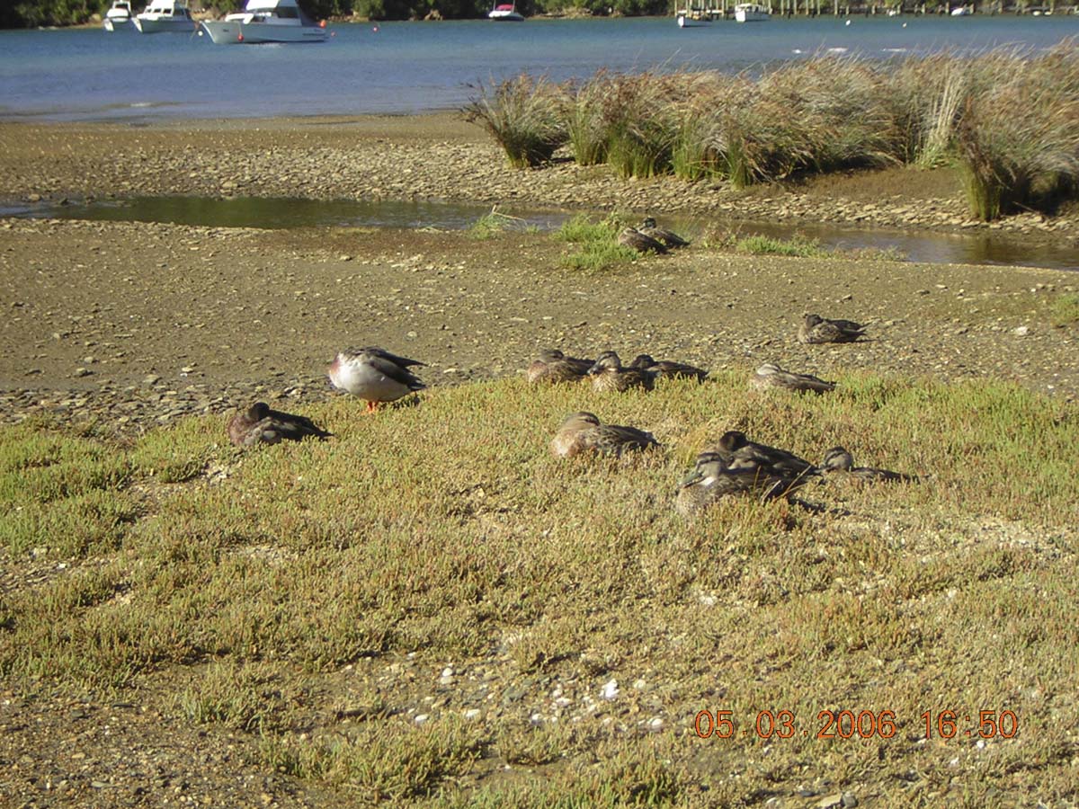 Mallard duck, Anas platyrhynchos is not indigenous to New Zealand and was first introduced from Australia in 1867 from English stock. They are common along the foreshore and persistent scavanges with visitors. Photo Foss Leach Enlarge |