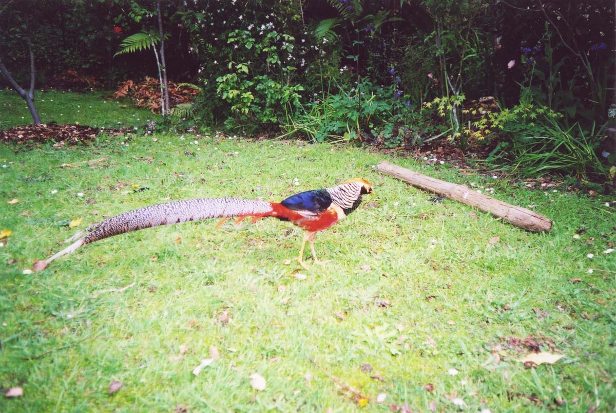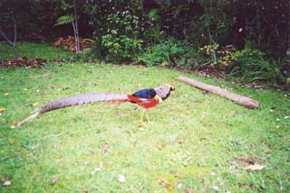 Lady Amherst's Pheasant, Chrysolophus amherstiae was introduced to New Zealand in the early 1800s by whalers. They are native to south western China and Myanmar (Burma). Very rarely seen in Ngakuta Bay. This specimen was photographed by Peter Hosey's son in his property November 2007. Photo Peter Hosey Enlarge |