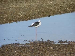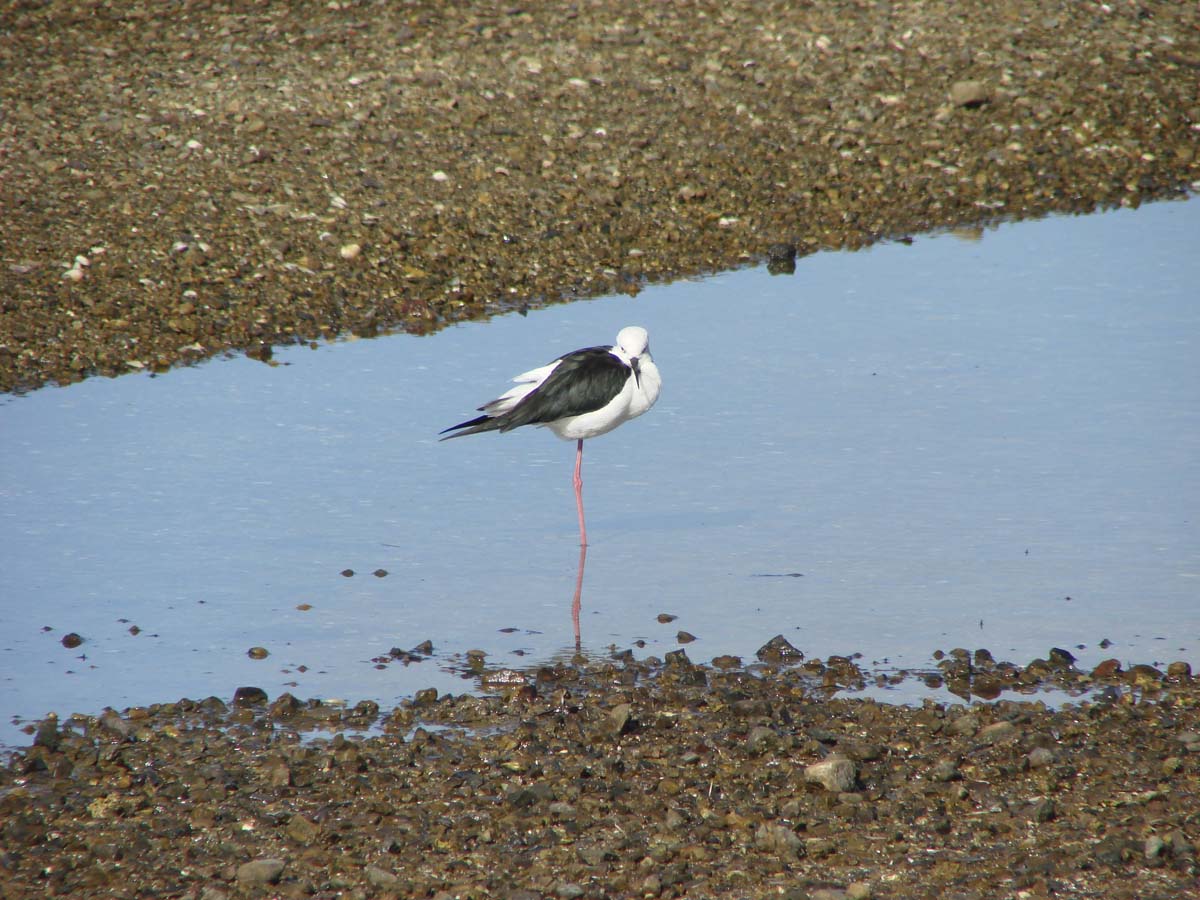 Pied stilt or Poaka, Himantopus himantopus is a self-introduced species that arrived about 1800 from Australia. Not often seen in Ngakuta Bay, but several usually arrive together, as with these four specimens seaward of the oyster catchers. Photo Foss Leach Enlarge |