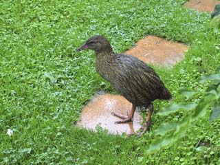 Wood hen or weka Gallirallus australis sbsp. is a flightless ground-dwelling rail. They can be extremely cheeky and even agressive once they decide they want something. They are adept at suddenly appearing from nowhere and then mysteriously disappearing, a trick which may partly be due to their muted but beautiful colouring which acts as camouflage. Weka populations have a strong tendency for boom and bust. Ngakuta Bay has had a sizeable number marauding about for several years. Young chicks are also common and the adult calls them with a distinctive booming sound, more noted amongt kakapo in New Zealand. Their more usual sound is a long drawn-out screech, especially at night. Photo Foss Leach Enlarge |